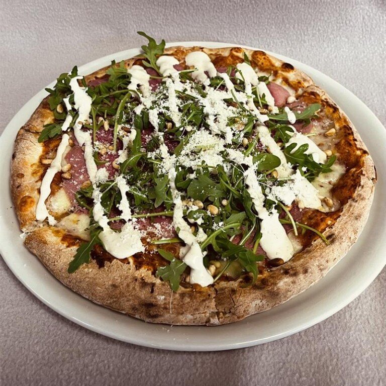 Carpaccio, cheese, pine nuts and truffle mayonnaise